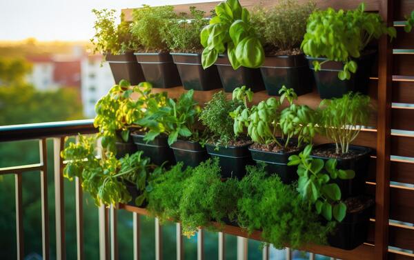 Ciekawą opcją jest mała szklarnia balkonowa na pomidory lub ogórki. Wybierz długi i wąski model z otwieraną pokrywą, aby rośliny otrzymały więcej światła. Przy aranżacji wąskiego balkonu w bloku przydadzą się również drewniane pionowe skrzynie ze wbudowaną kratką. Można w nich hodować rośliny pnące jak powojnik, groszek, róża, ale także pomidory czy ogórki.