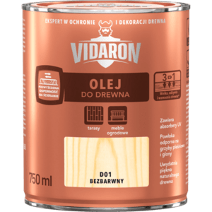 Jeśli lubisz stylistykę vintage, zastosuj Olej do Drewna VIDARON. Olejowanie nadaje drewnu matowy i elegancki wygląd, nieco w stylu retro. Pomaga w tym zawartość szlachetnego wosku. Nadal można cieszyć się widokiem naturalnego usłojenia drewna, natomiast gama dostępnych kolorów daje duże możliwości barwienia.